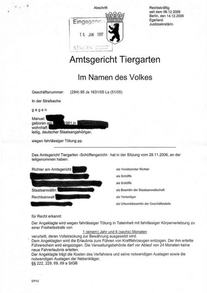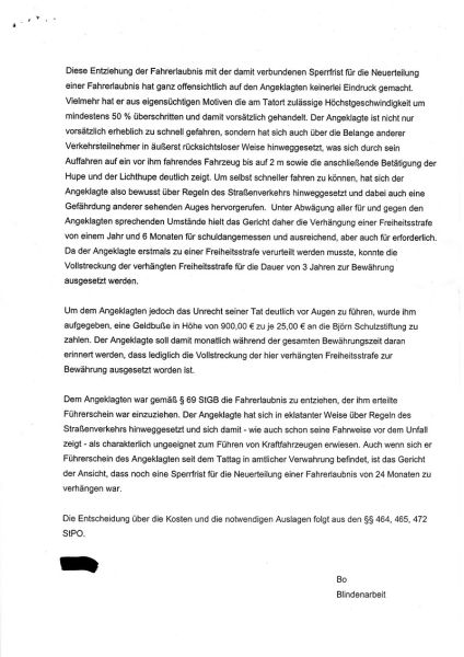 Das ist das Urteil für den Menschen, der mir mein Kind totgefahren hat!!